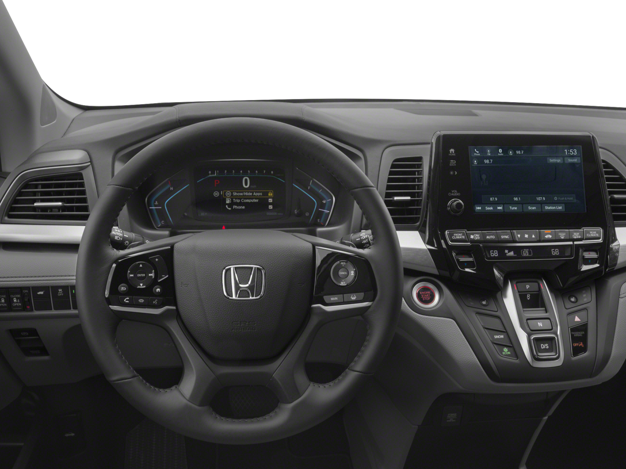 3rd row seats: split-bench, 4-Wheel Disc Brakes, 4.33 Axle Ratio, 7 Speakers, ABS brakes, Air Conditioning, Alloy wheels, AM/FM radio: SiriusXM, Anti-whiplash front head restraints, Apple CarPlay/Android Auto, Auto High-beam Headlights, Auto-dimming Rear-View mirror, Automatic temperature control, Blind Spot Information (BSI) System warning, Brake assist, Bumpers: body-color, Delay-off headlights, Driver door bin, Driver vanity mirror, Driver's Seat Mounted Armrest, Dual front impact airbags, Dual front side impact airbags, Electronic Stability Control, Emergency communication system: HondaLink, Exterior Parking Camera Rear, Four wheel independent suspension, Front anti-roll bar, Front Bucket Seats, Front dual zone A/C, Front fog lights, Front reading lights, Fully automatic headlights, Garage door transmitter: HomeLink, Heated door mirrors, Heated Front Bucket Seats, Heated front seats, Illuminated entry, Knee airbag, Leather Seat Trim, Leather steering wheel, Low tire pressure warning, Memory seat, Occupant sensing airbag, Outside temperature display, Overhead airbag, Overhead console, Panic alarm, Passenger door bin, Passenger seat mounted armrest, Passenger vanity mirror, Power door mirrors, Power driver seat, Power Liftgate, Power moonroof, Power passenger seat, Power steering, Power windows, Radio data system, Radio: 160-Watt AM/FM/HD/SiriusXM Audio System, Rear air conditioning, Rear anti-roll bar, Rear reading lights, Rear seat center armrest, Rear window defroster, Rear window wiper, Reclining 3rd row seat, Remote keyless entry, Security system, Speed control, Speed-sensing steering, Speed-Sensitive Wipers, Split folding rear seat, Spoiler, Steering wheel mounted audio controls, Tachometer, Telescoping steering wheel, Tilt steering wheel, Traction control, Trip computer, Turn signal indicator mirrors, Variably intermittent wipers, Wheels: 18 Silver-Painted Alloy. Recent Arrival! 19/28 City/Highway MPG