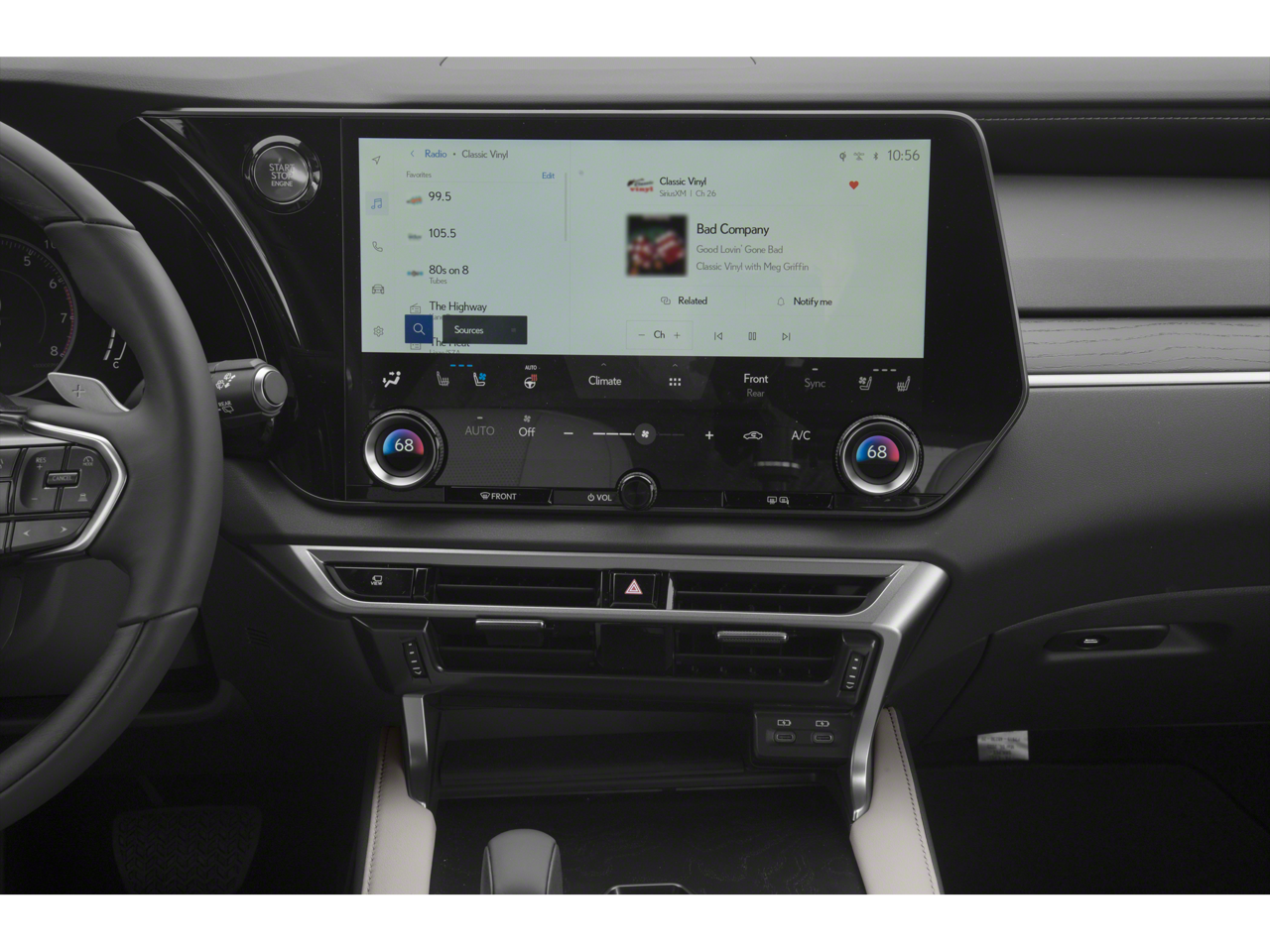 - Radio: Lexus Interface w/9.8" HD Touchscreen Display -inc: 12 speaker premium sound system, navigation system, advanced voice command casual-language voice recognition system, Bluetooth hands free phone and automatic phonebook download capabilities, HD Radio, Apple CarPlay, Android Auto and Google Assistant, Amazon Alexa, Siri Eyes Free mode, navigation equipped vehicles, MID data sharing, voice recognition and cache radio